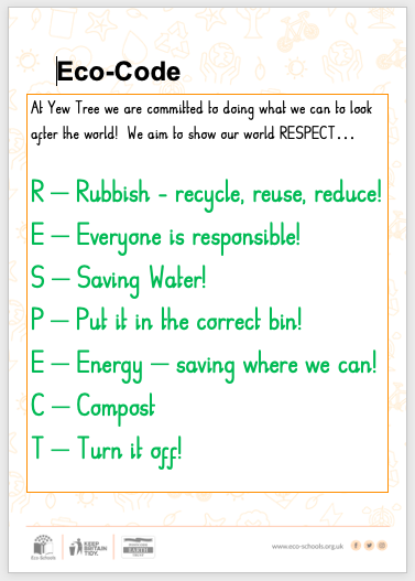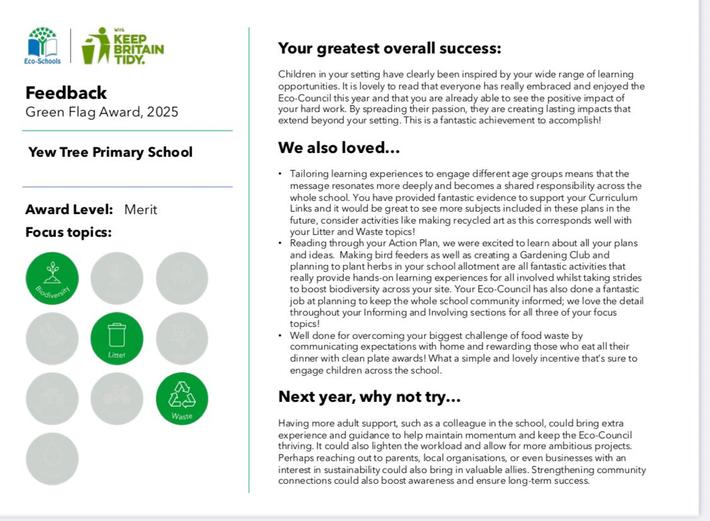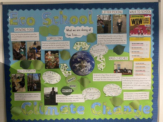 At Yew Tree Primary school we are proud to share that we have been awarded the Eco - School's Green Flag for the fourth year running.