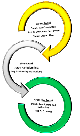To achieve the award, there are 7 steps that we must follow. These are broken down into bronze, silver and then the Eco Green award.