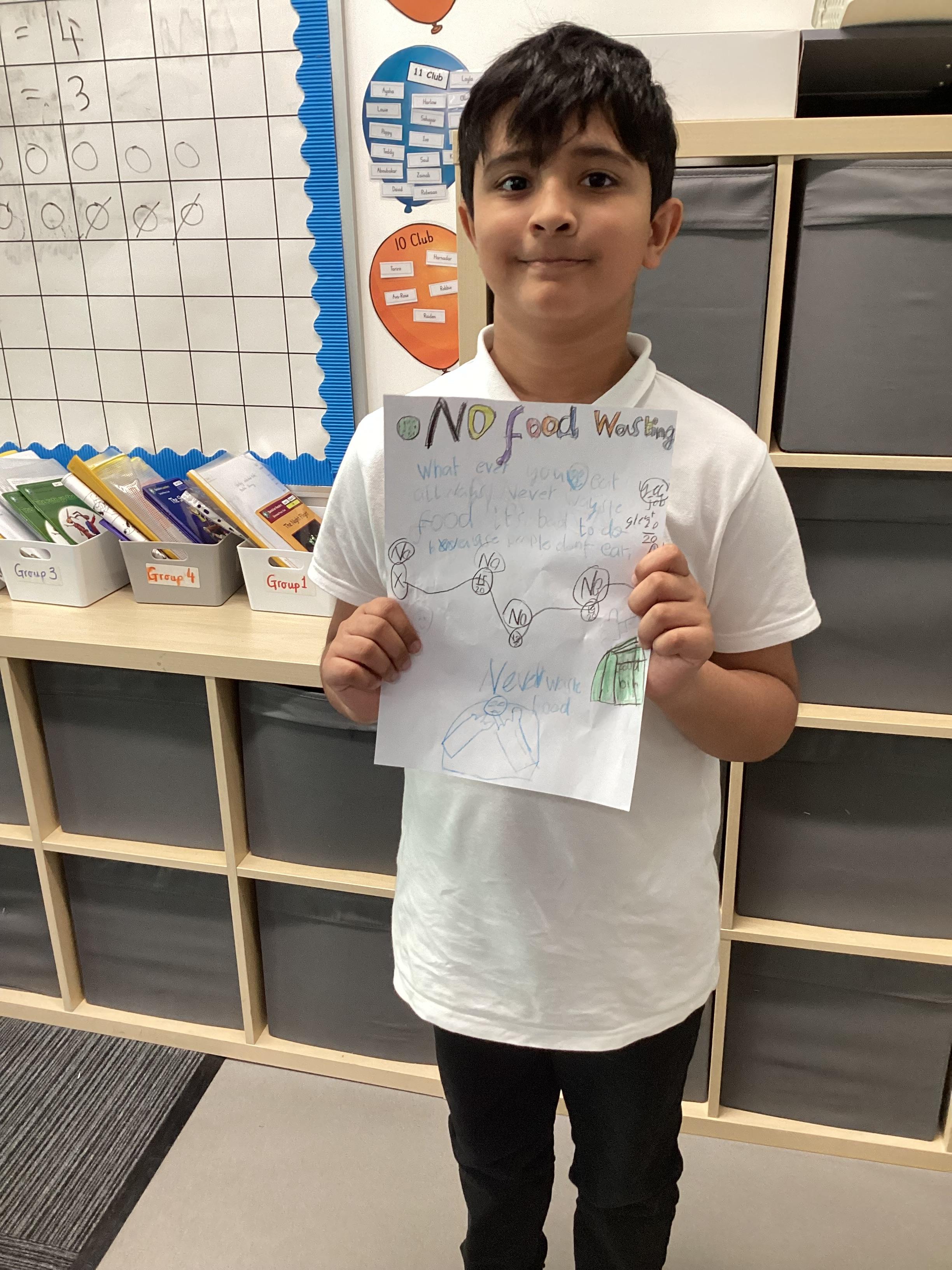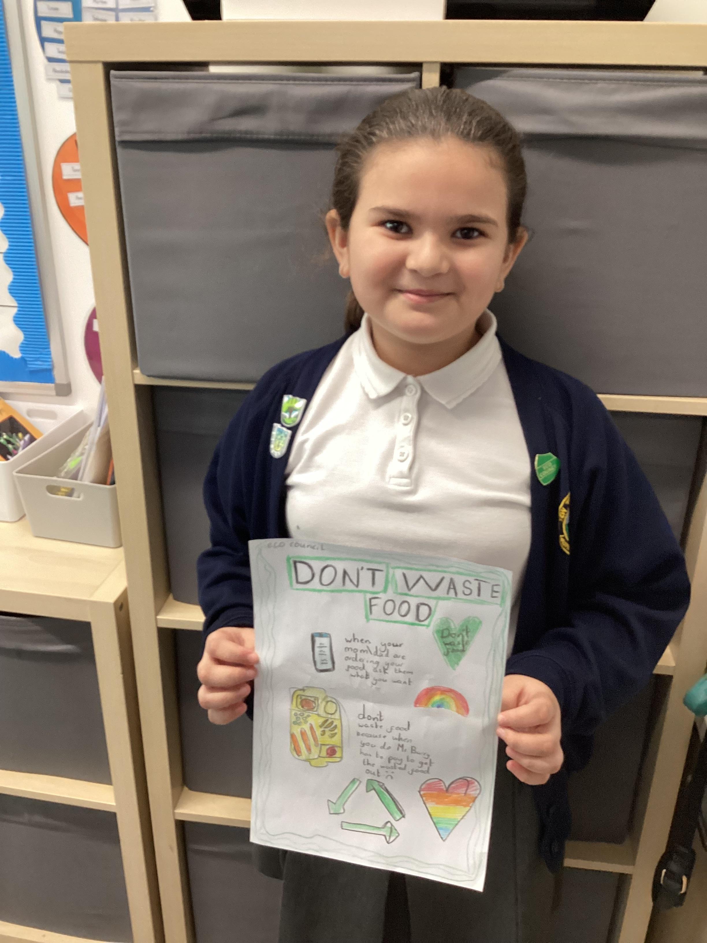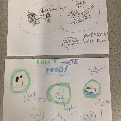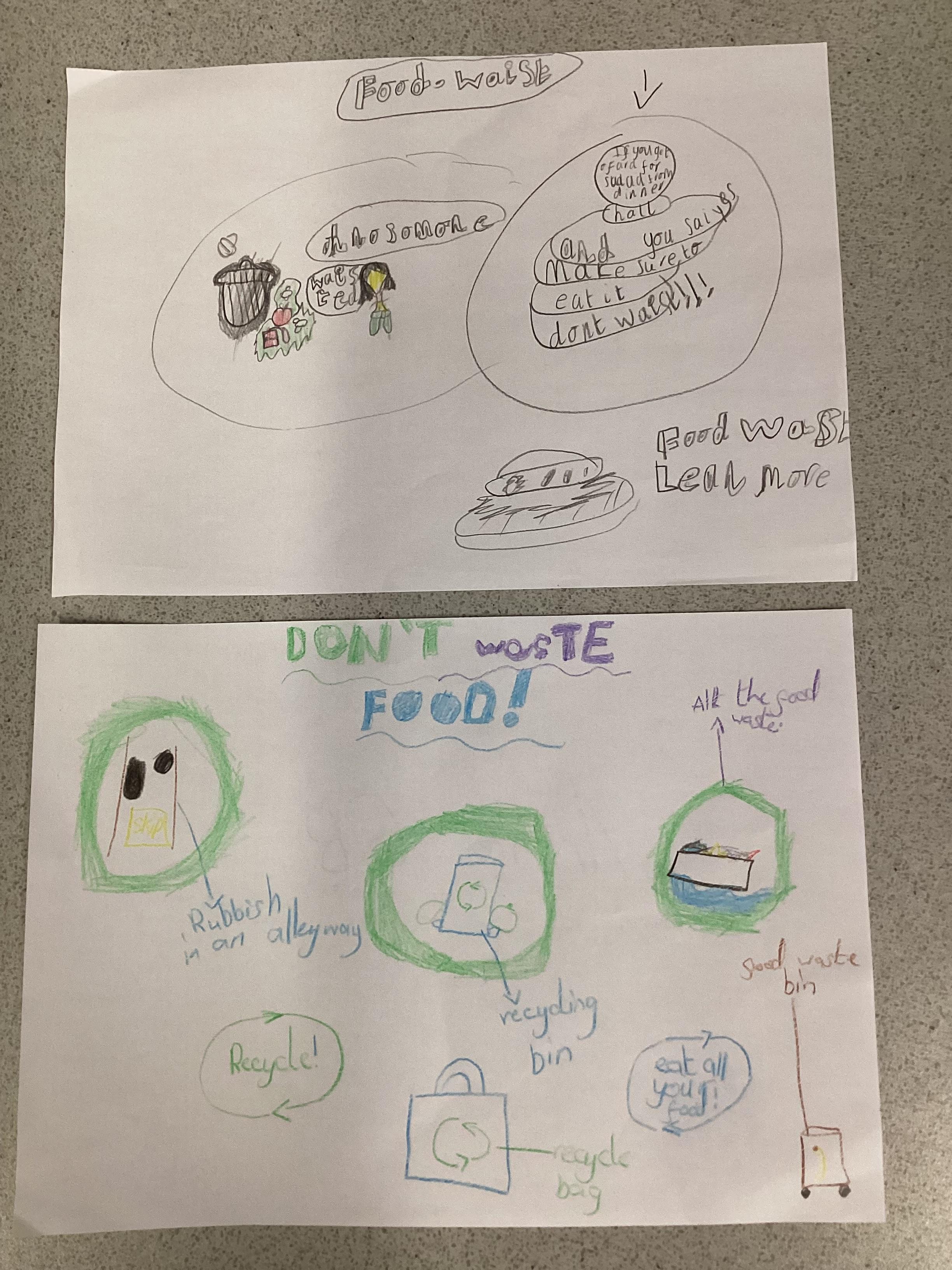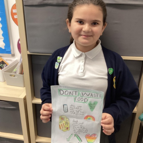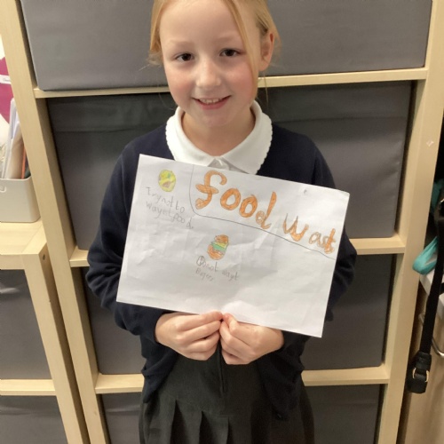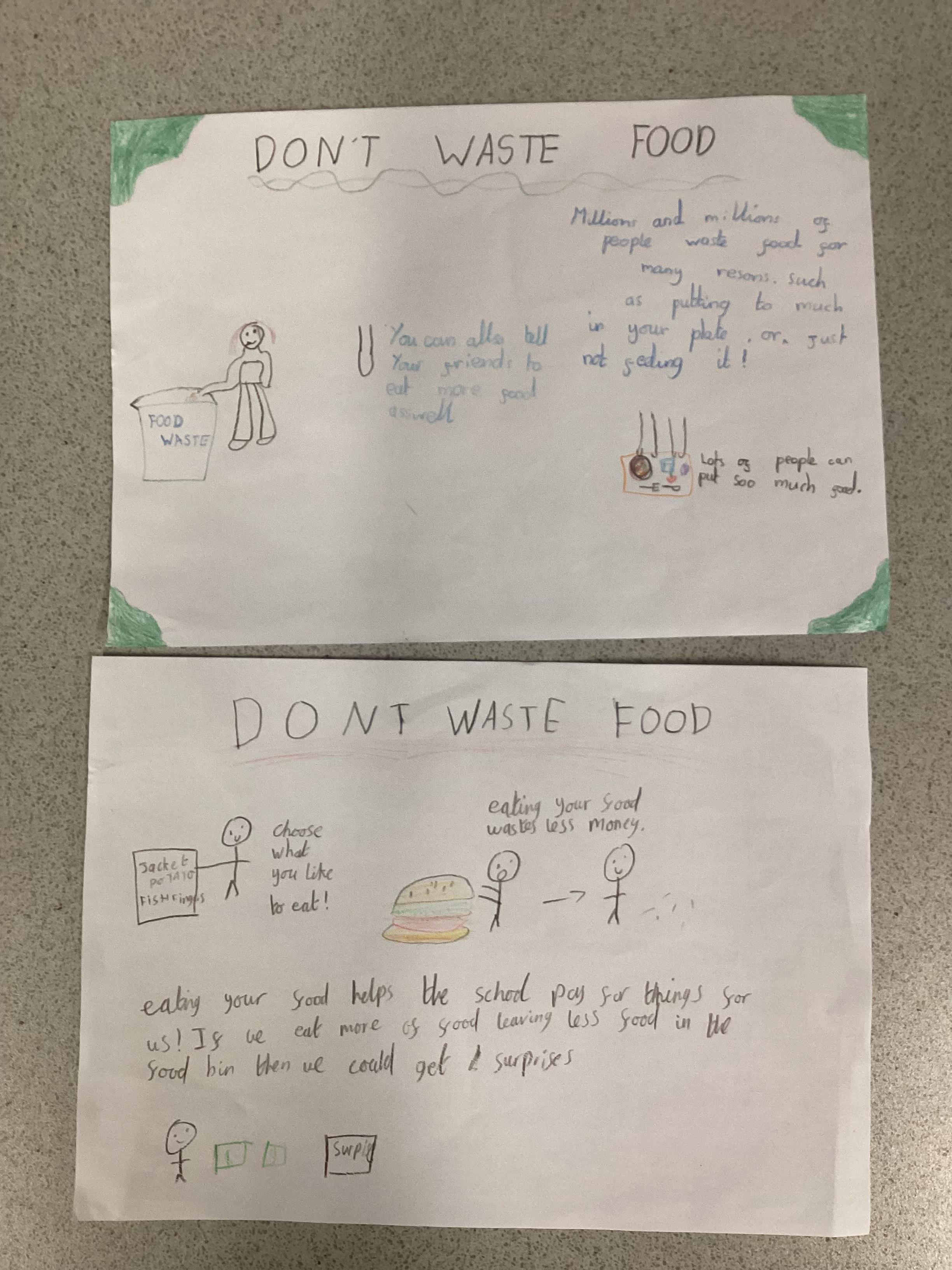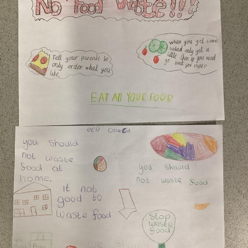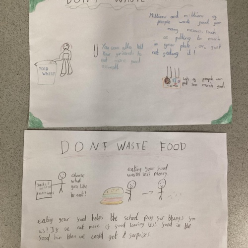Our Eco School Councillors have been learning about the impact of food waste on the environment and on our school. They have though of ways they can help reduce food waste at our school and how they can encourage their peers to reduce food waste too. They designed posters and fed back to their class what they had done!