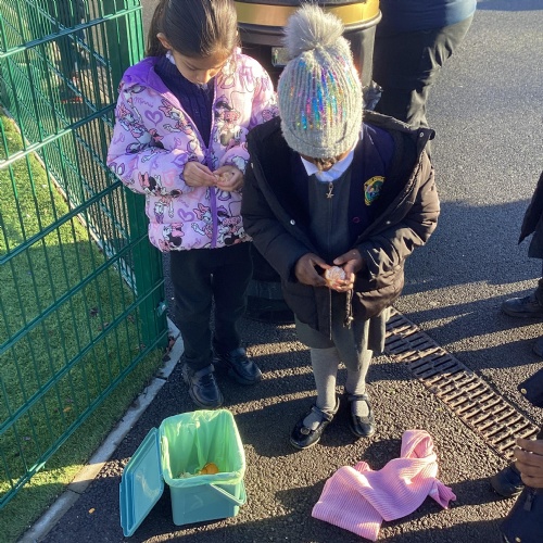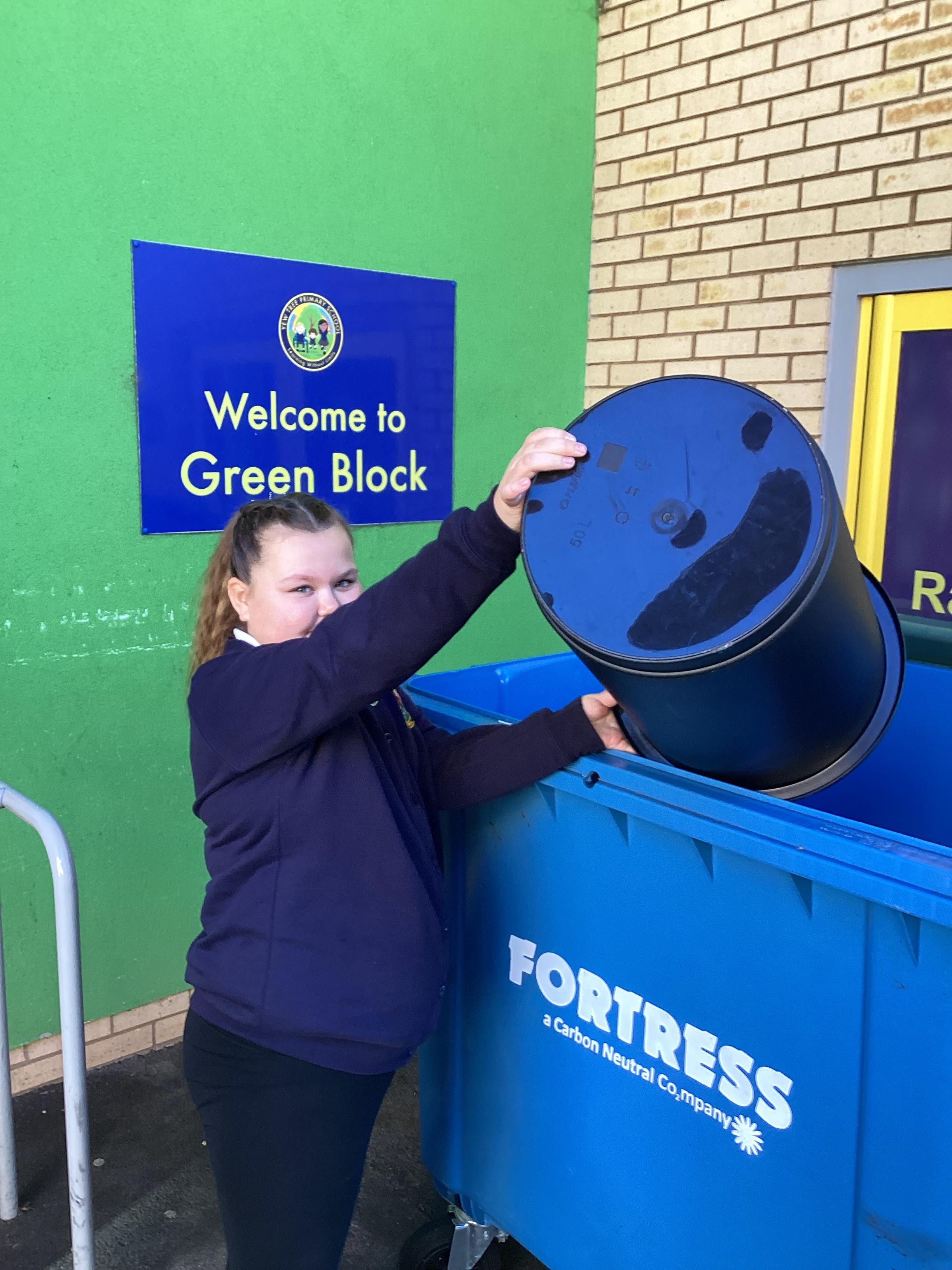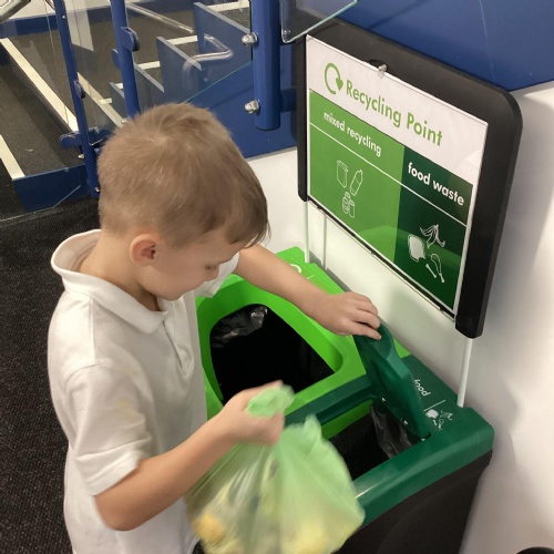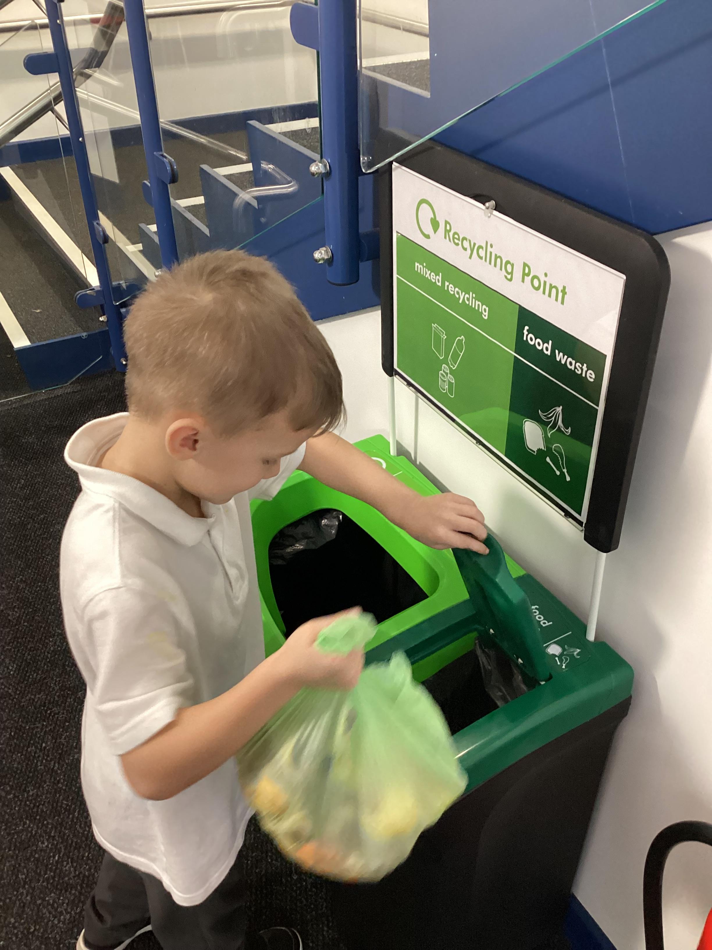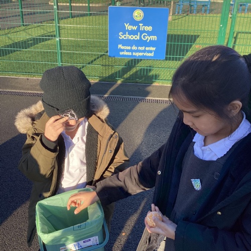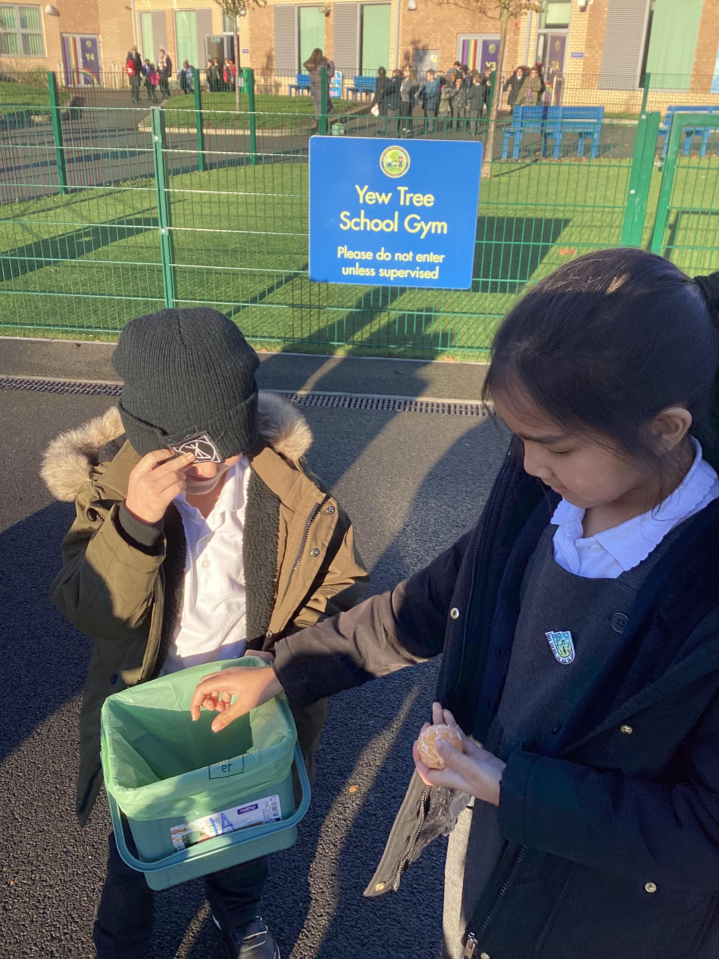 We have separate food bins for food waste. Our EYFS and KS1 classes also have food caddies in their classrooms  where they can put their food waste then the Eco Councillors empty them into the food waste bins so that our food waste at Yew Tree can be disposed of properly. There is food caddy in the staff room for our teachers to use too!