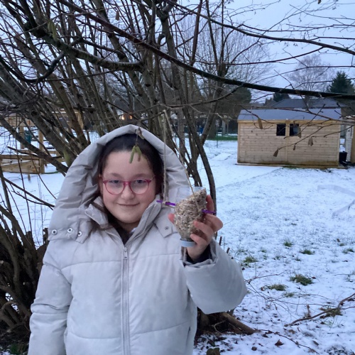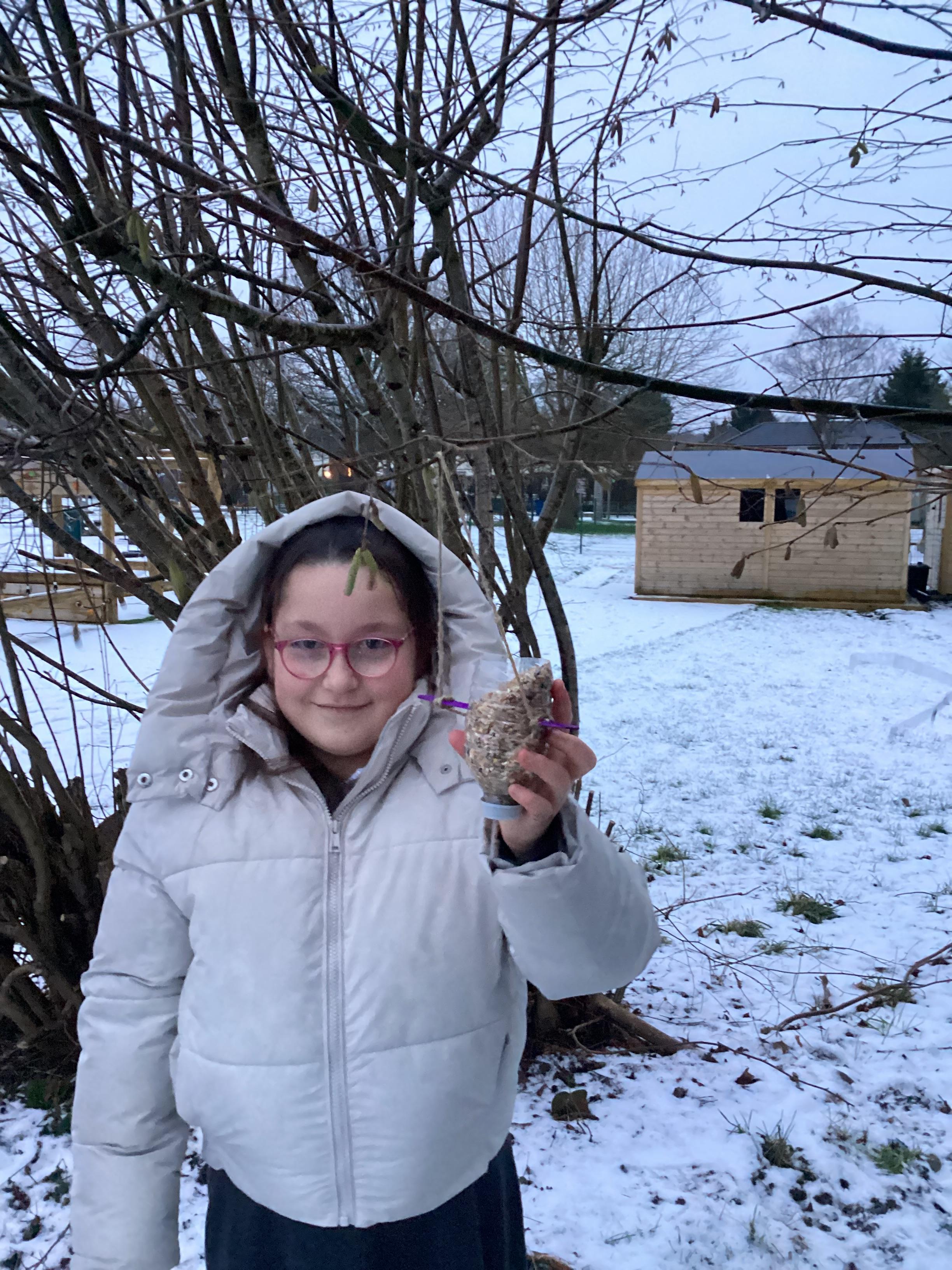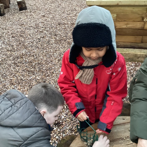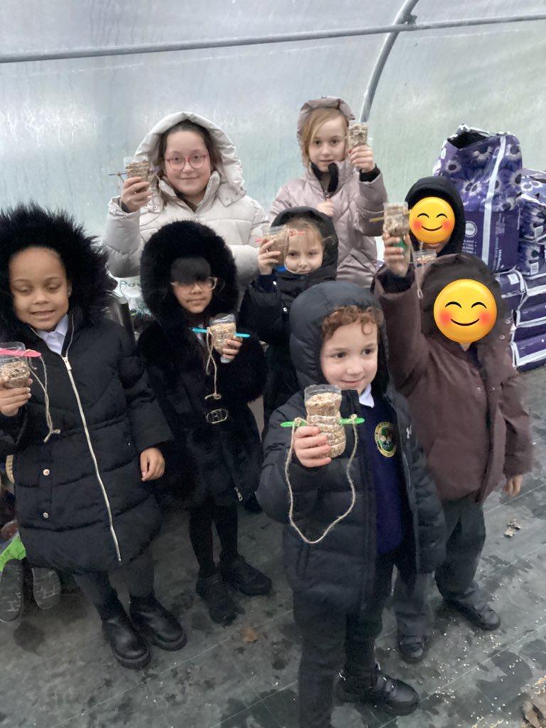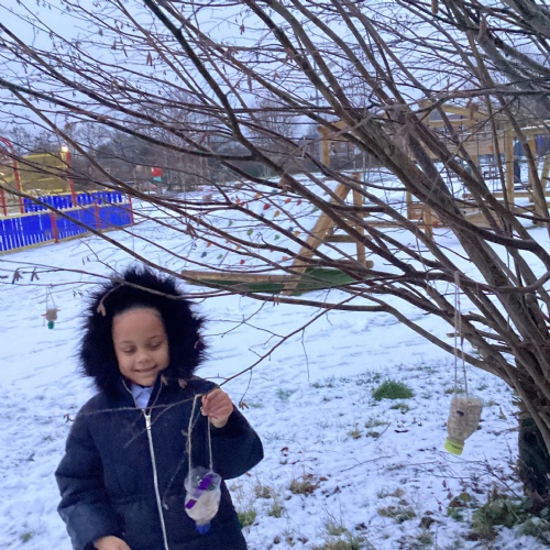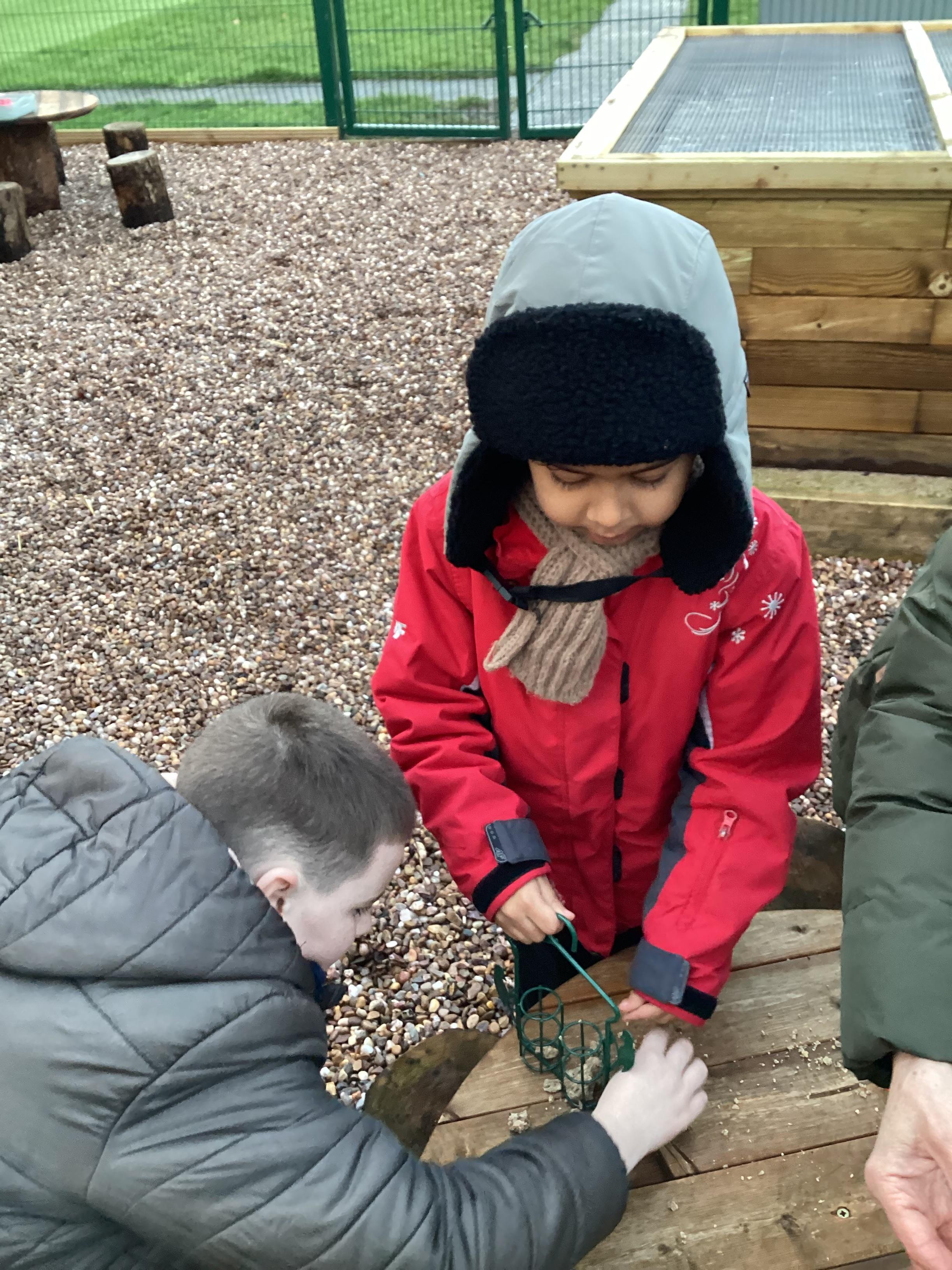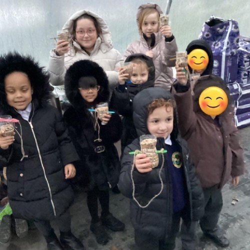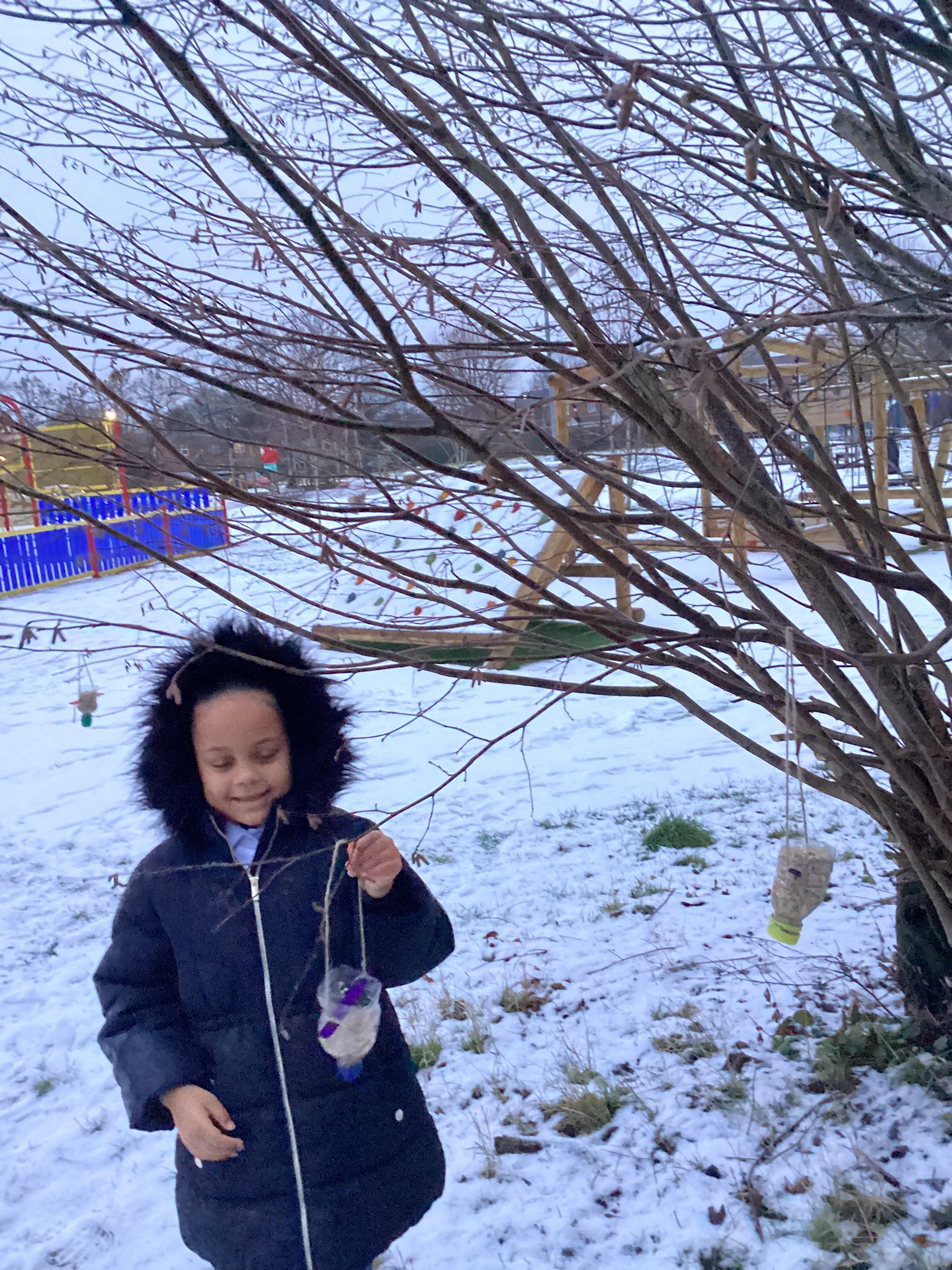 We re-used plastic bottles to make bird feeders and hung them in our school grounds to encourage birds to come.