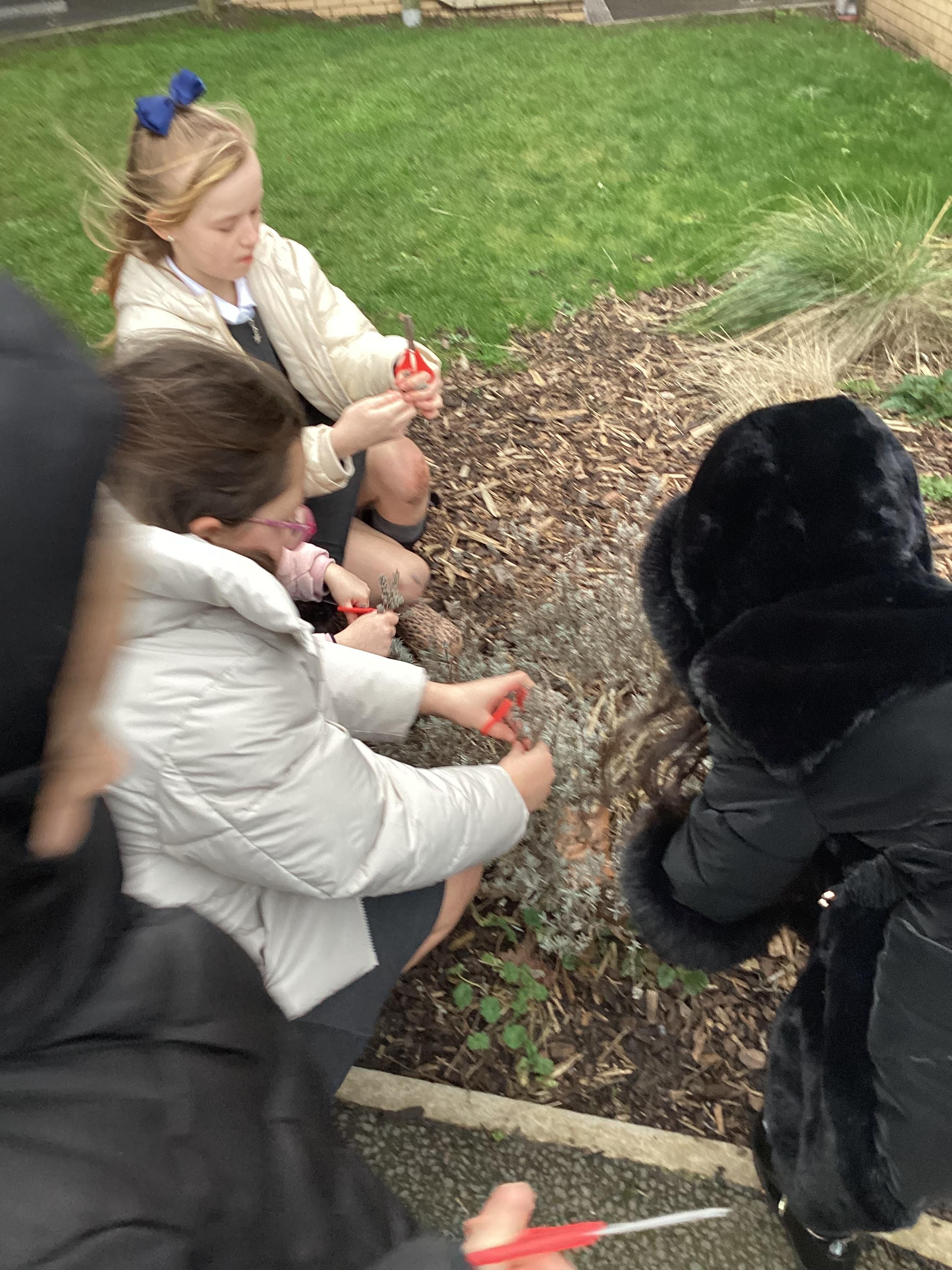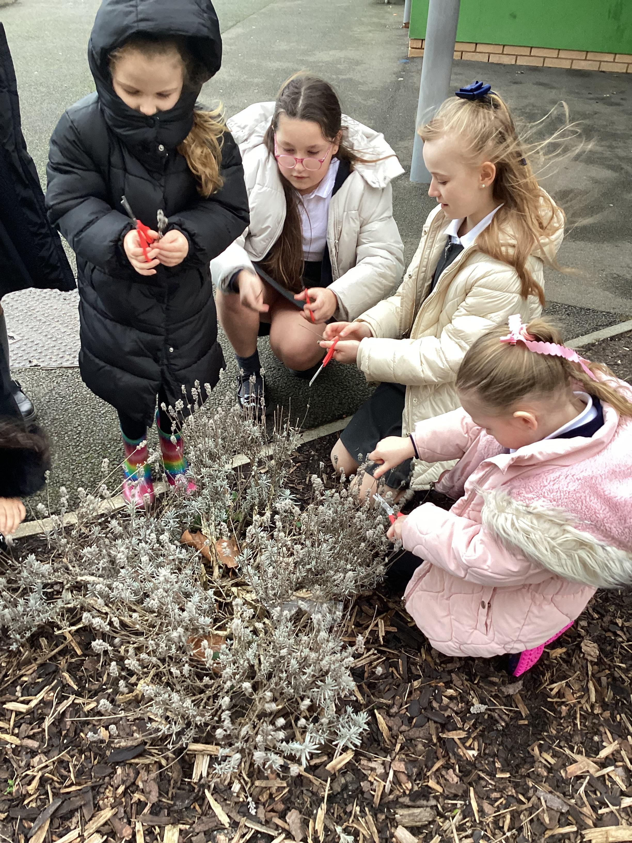 We dried out the lavender that we collected last week and used it to make a lavender bags to take home.
