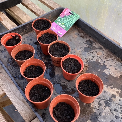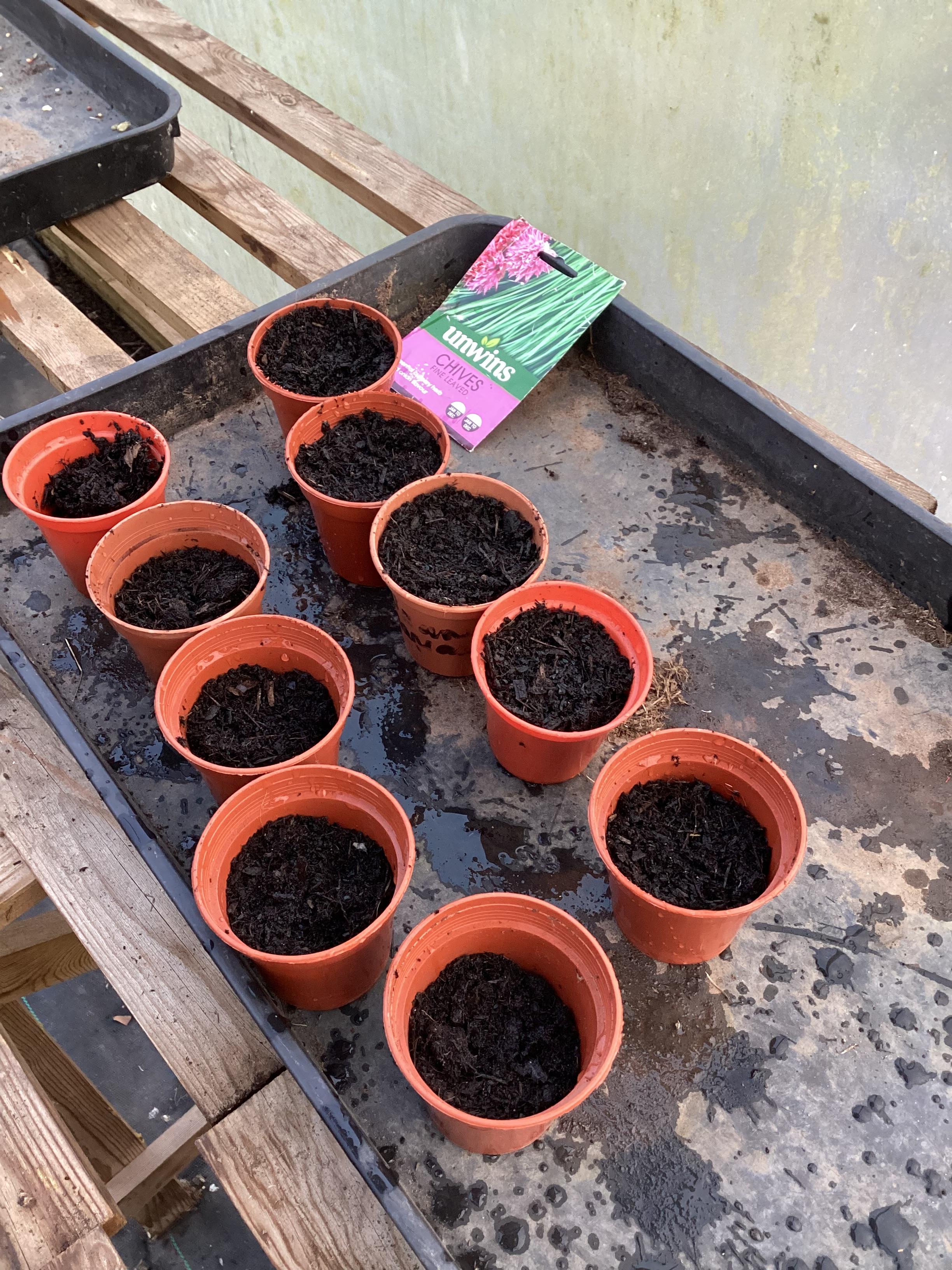 We watered the radishes, planted chives in pots and topped up the bird feeders.